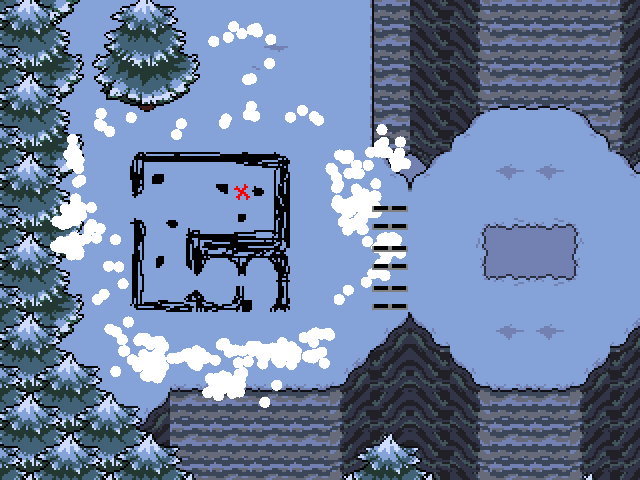 Если после прохождения моста пройти на восток, можно столкнуться с несколькими кучами снега у дороги. Если протагонист осмотрит каждую из них, то получит 30G. Также здесь есть будка Большого Пса. Игрок, пройдя вправо, встретит самого пса, который появится из снежной кучи, и ему придётся начать бой с ним, чтобы продолжить путь.